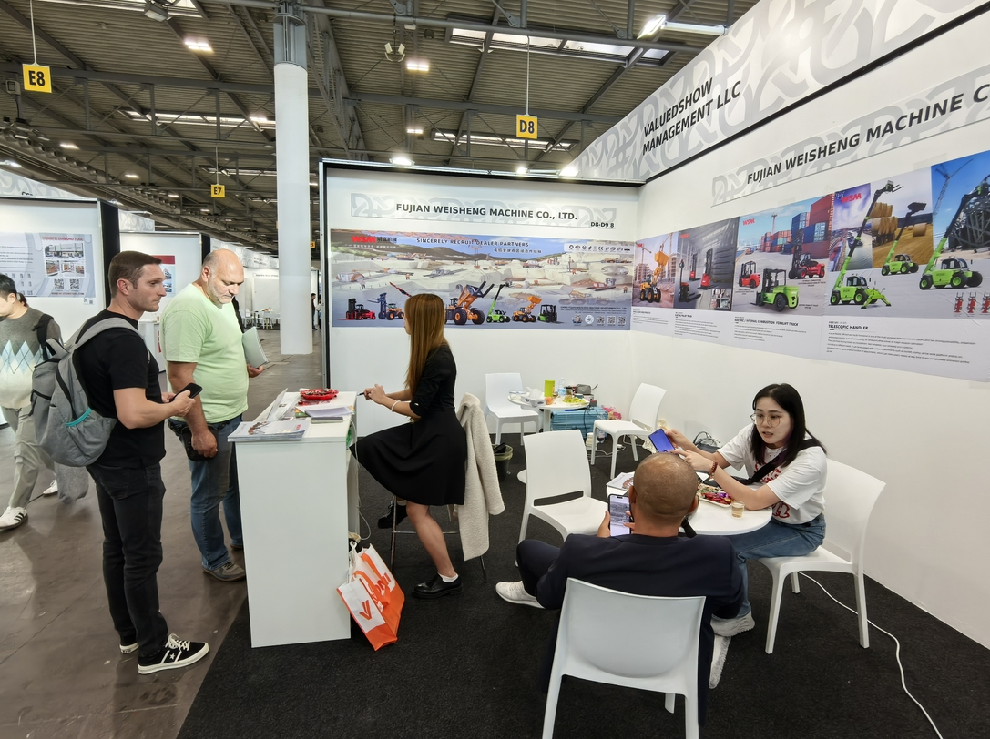 在展會(huì)上,我們展示了最具創(chuàng)新性的針對(duì)石材工況量身定制的伸縮臂吊裝車(炮車)、叉裝車等產(chǎn)品,
